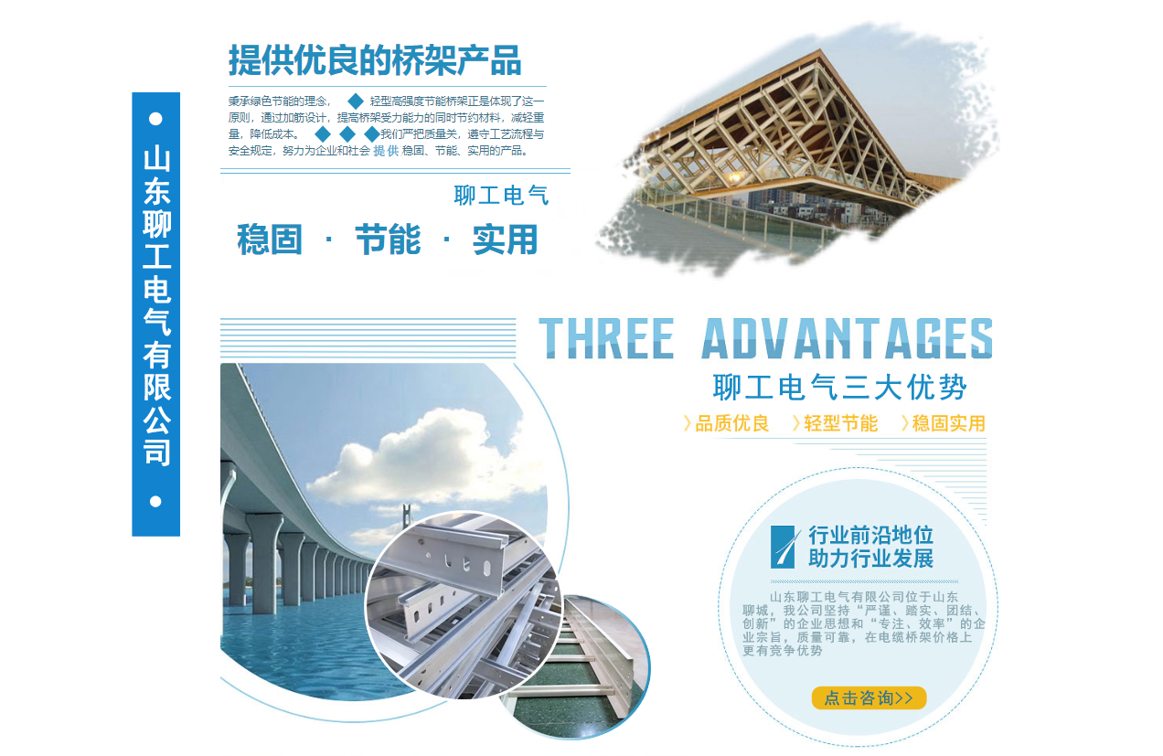 山東聊工電氣有限公司位于山東聊城,是一家銷售各類橋架的公司,公司主營鍍鋅防火噴塑橋架,鍍鋅防火電纜橋架 ,不銹鋼電纜橋架,熱浸鋅電纜橋架,鋁合金電纜橋架,熱鍍鋅電纜橋架,梯式電纜橋架等我公司堅持“嚴(yán)謹(jǐn)、踏實(shí)、團(tuán)結(jié)、創(chuàng)新”的企業(yè)思想和“專注、效率”的企業(yè)宗旨,質(zhì)量可靠,在電纜橋架價格上更有競爭優(yōu)勢。公司追求品質(zhì),配有研發(fā)人員,進(jìn)行產(chǎn)品的改革和創(chuàng)新,服務(wù)先進(jìn)走出了一條富有企業(yè)特色的可持續(xù)化發(fā)展之路! 我公司鄭重向你承諾:保證最好的質(zhì)量,以低的價格,完善的售后服務(wù),來答謝新老客戶。可提前電話聯(lián)系。...